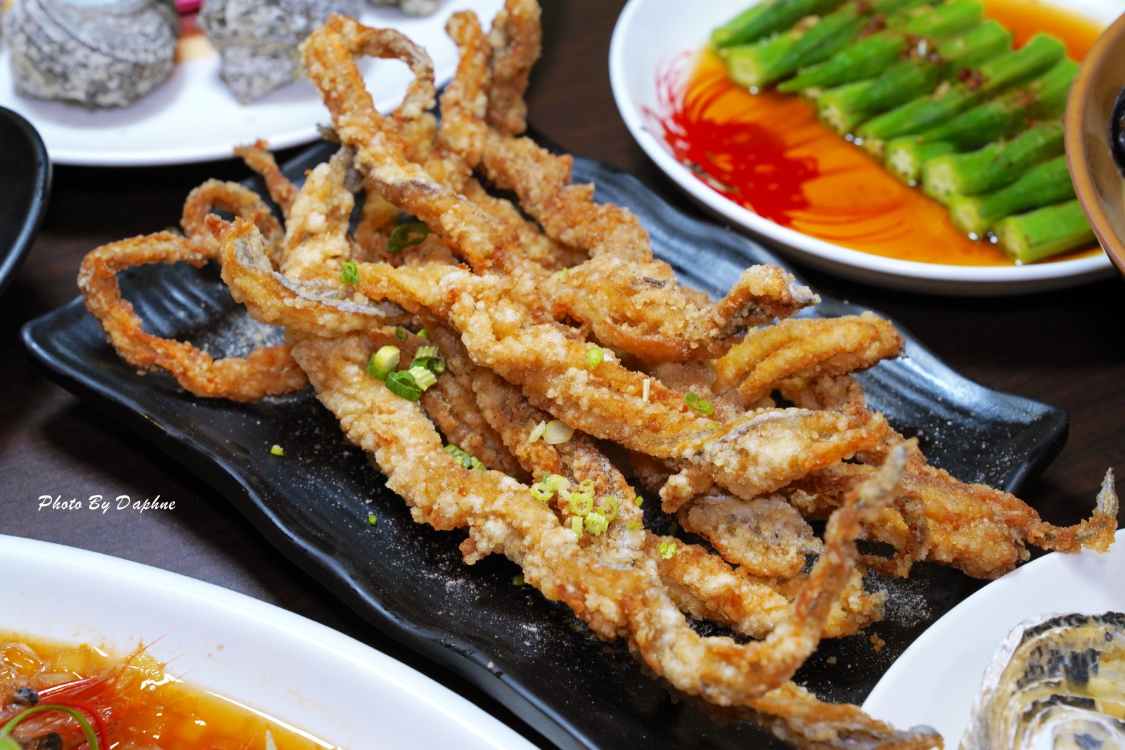 蝦寮食堂的白帶魚是處理成長條狀,細心地把魚刺都挑掉,把白帶魚條炸得香酥脆,內部仍可吃到肉質軟細,單吃或是當下酒菜都出色。