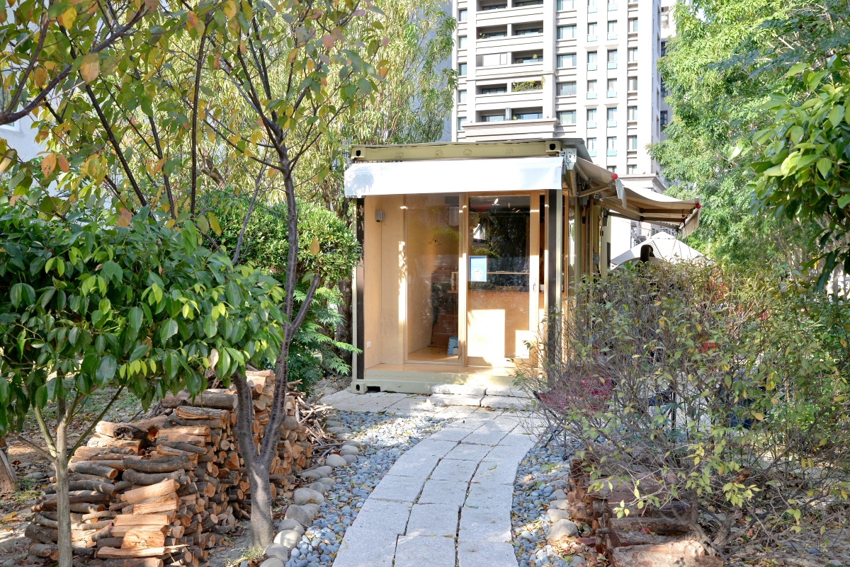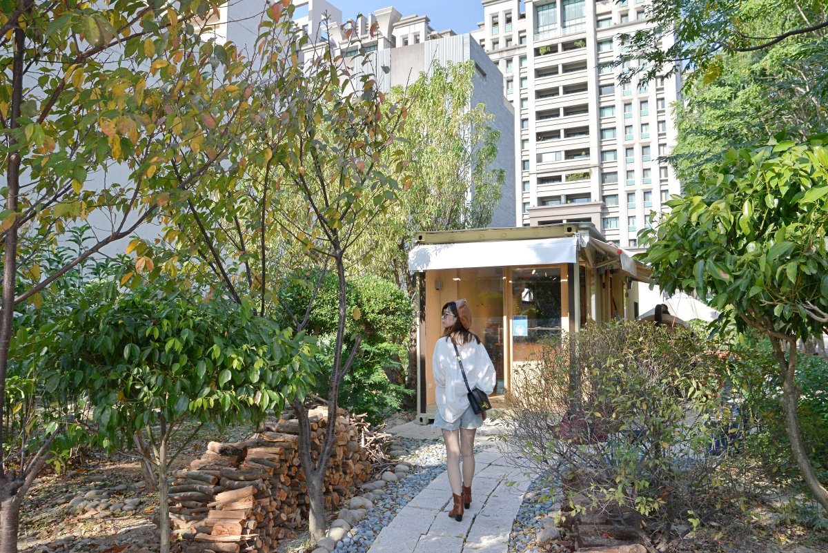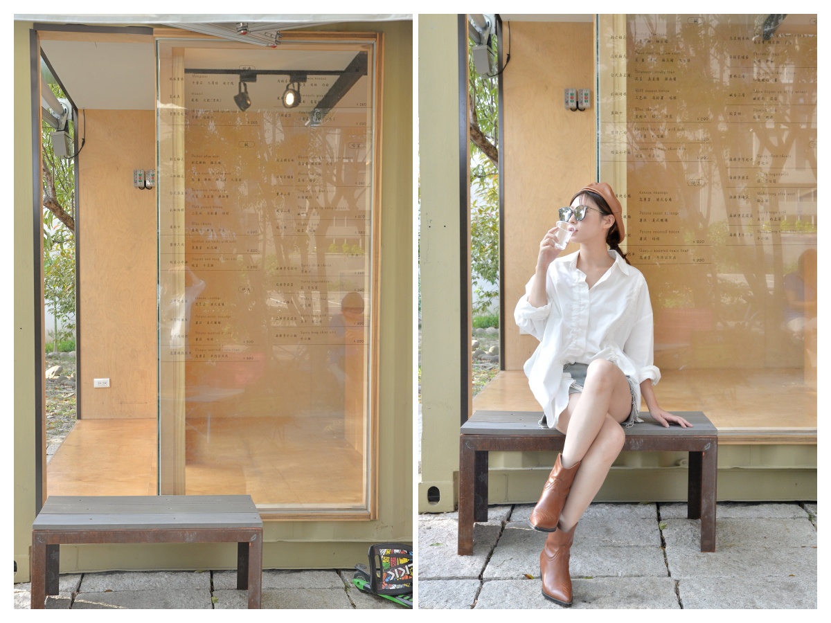 沿著石板走近貨櫃屋,透過透明的窗門可以看見暖橘色調的空間,拉開門的桌上放了幾本菜單,幾位大姐們認真地工作著。看好需要的 Pizza 直接點餐結帳,可以選擇外帶或是在旁邊的戶外空間享用,兩者都是使用外帶紙盒裝,這樣即使在那邊吃不完也可以直接帶走。