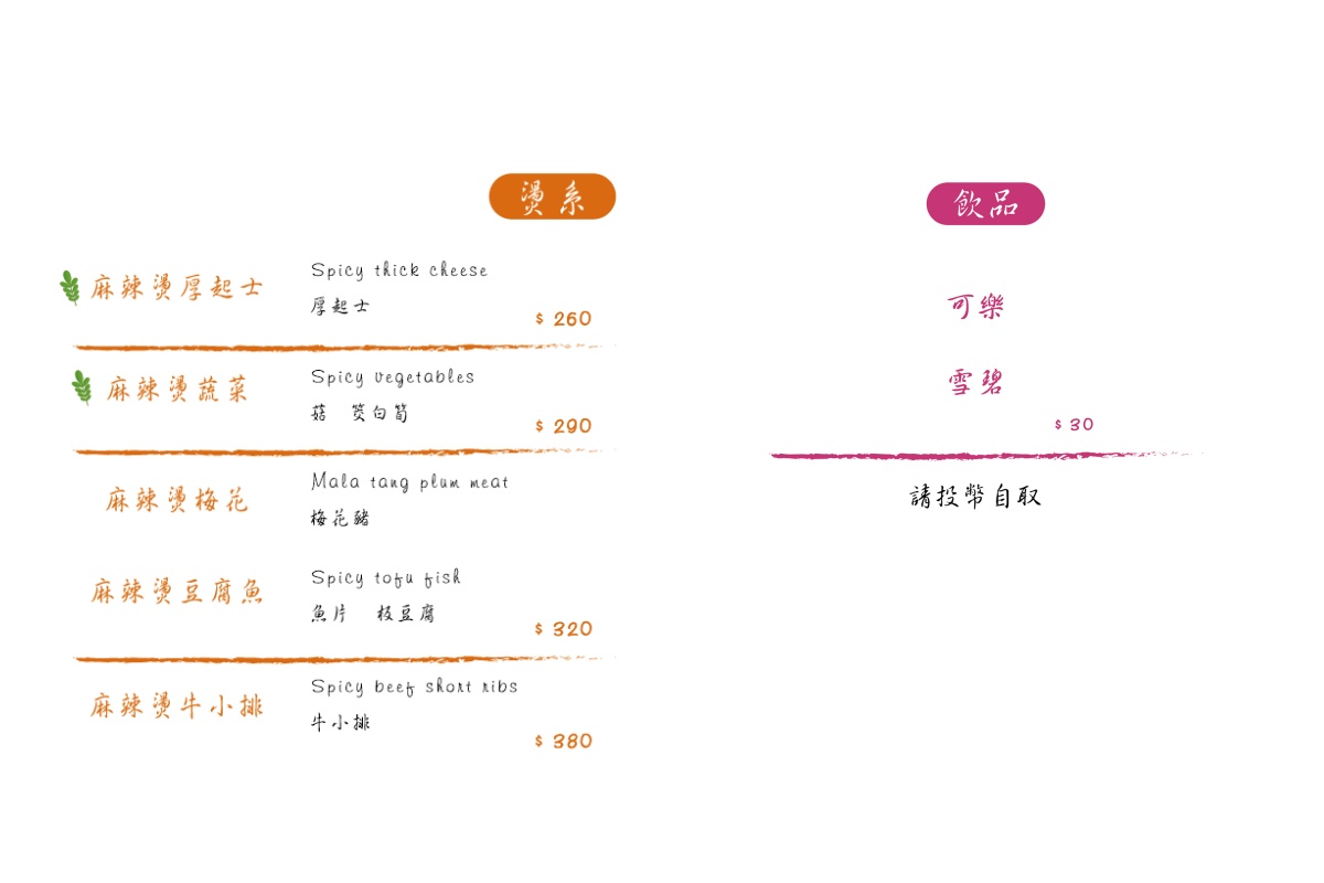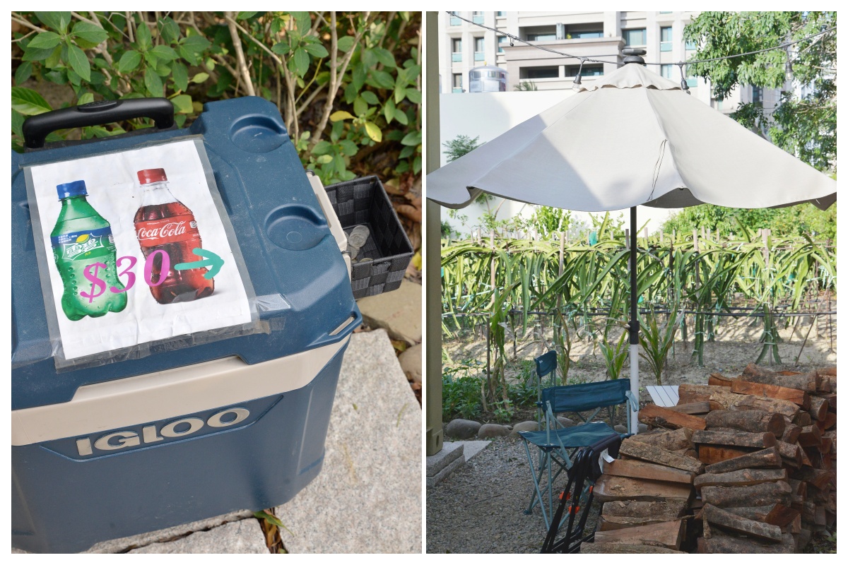 飲品只提供兩種氣泡飲料,雪碧和可樂,放在戶外區,有需要的客人自己放30元拿飲料。我覺得這設計很棒,尤其是在這個空間,特別有戶外感。