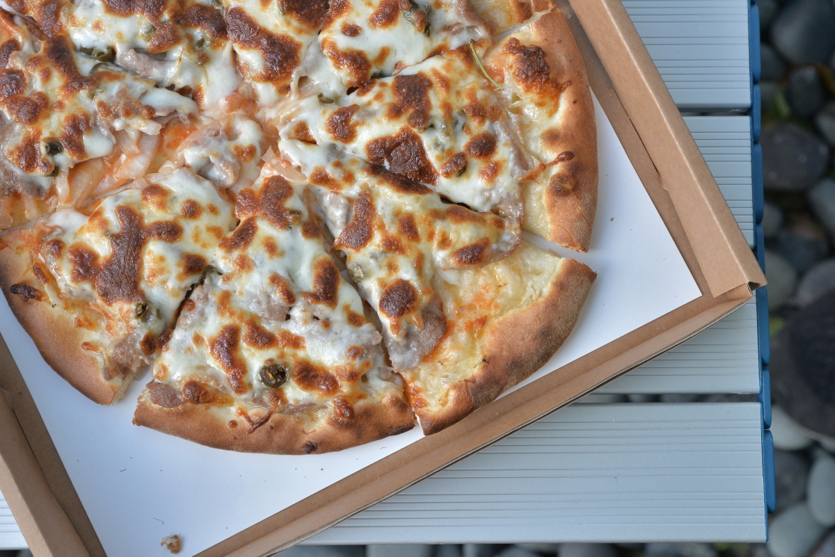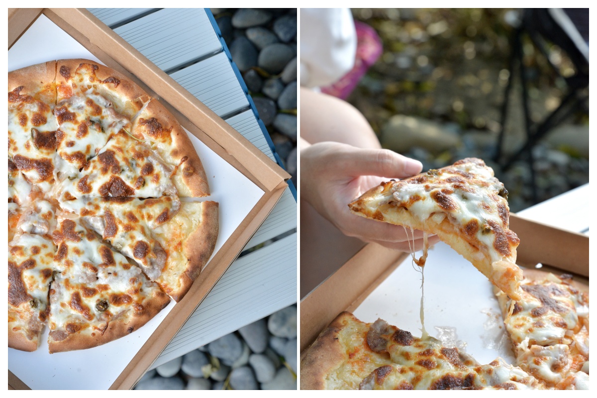 剝皮梅花是 IG 竹北局外人分享給我的,她直呼好好吃!所以我二話不說就點了,果真好吃!剝皮辣椒的辣度剛剛好,香氣有出來,一口就能吃到剝皮辣椒特別的風味,搭配梅花豬肉與香濃的起司,梅花豬肉帶有些微油脂,香嫩不膩口,絕配!我們兩人一口接一口的沒興致講話,全神貫注在享用美味的披薩,默默地吃了一盒半,剩下半盒帶回家,我工作到一半肚子餓就去吃一片,小孩回家以後,我們就一起吃光(小孩也只吃了後面的脆餅)。