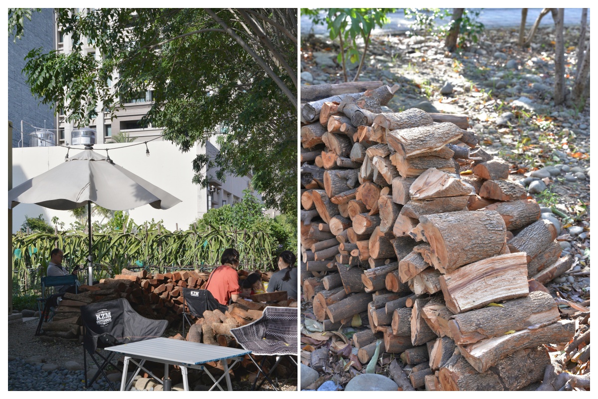 使用柴燒窯烤,在整個空間裡會看見四處放滿了需要使用的龍眼木柴,淡淡的香氣散發,真的好有露營的感覺啊!
