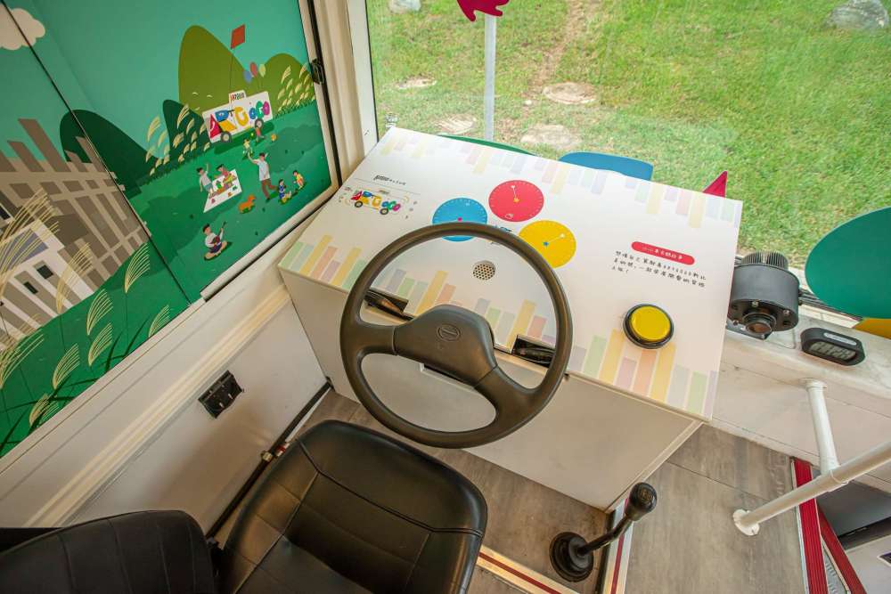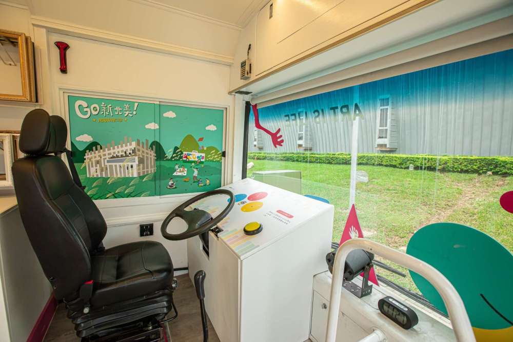 所以呢,這一台ARTGOGO新北美術號原本是一台公車,喜歡的小朋友還可以在這個位置玩玩方向盤XD