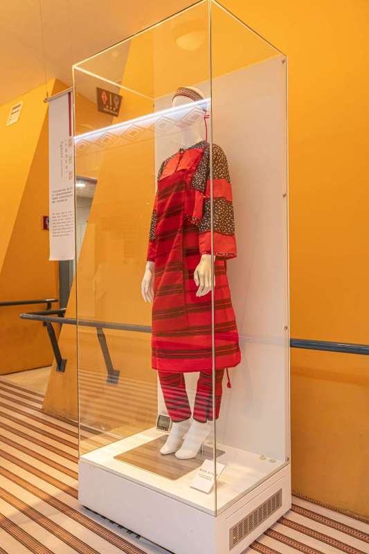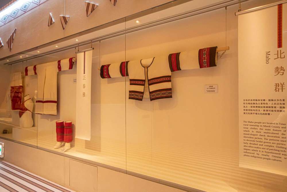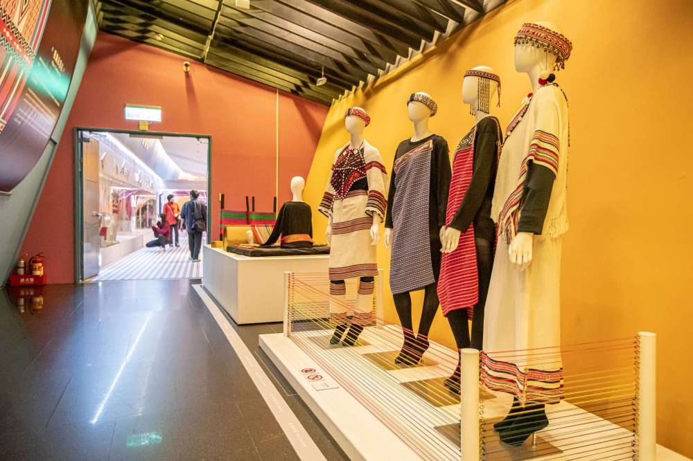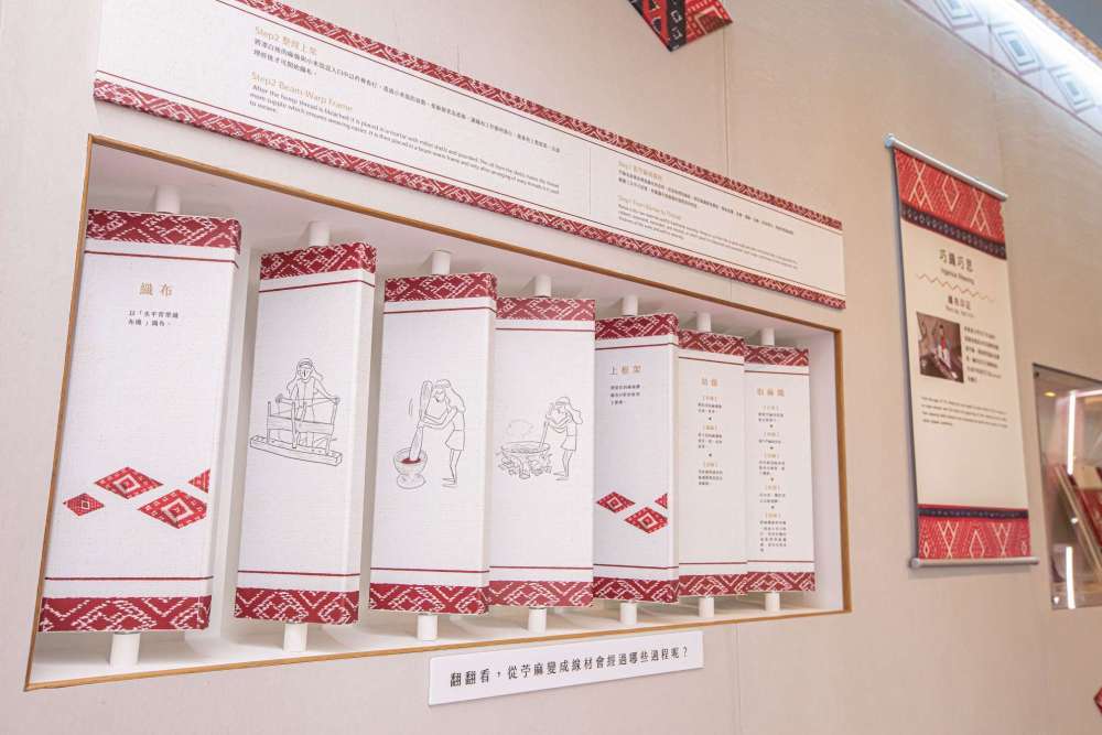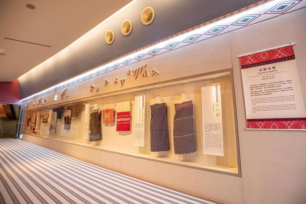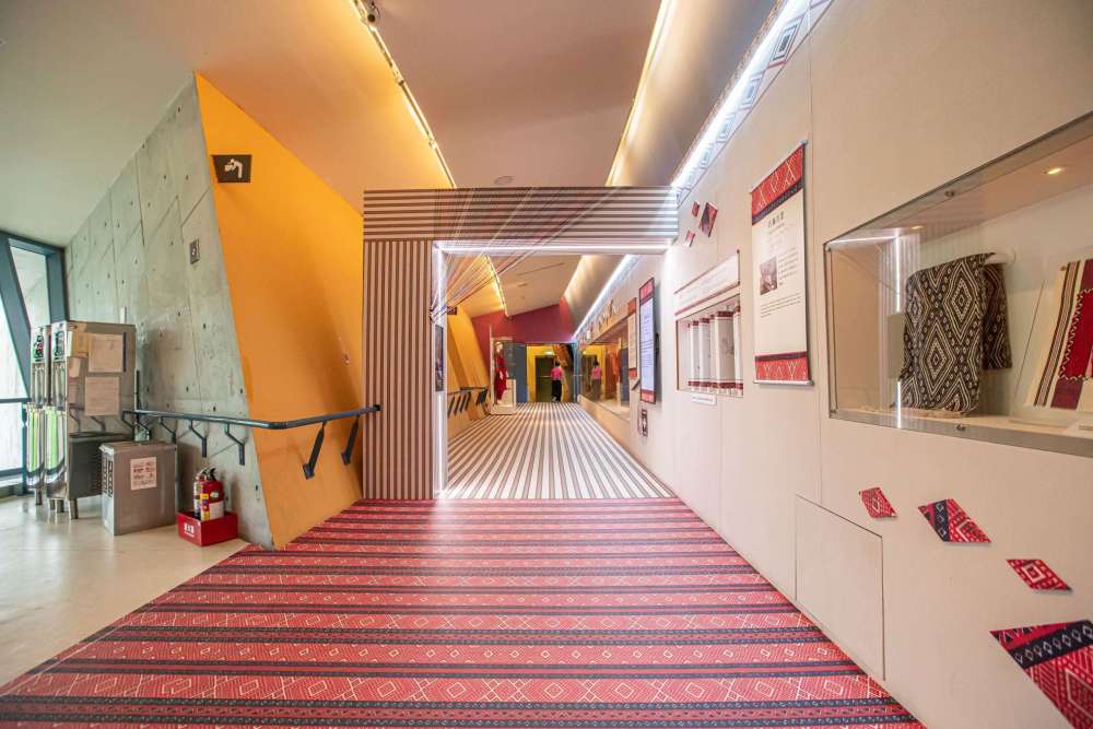 接下來,在這一整條長廊裡面,就可以感受到包括泰雅風情與巧織巧思,還有各飾各樣與我織故我在等四個主題