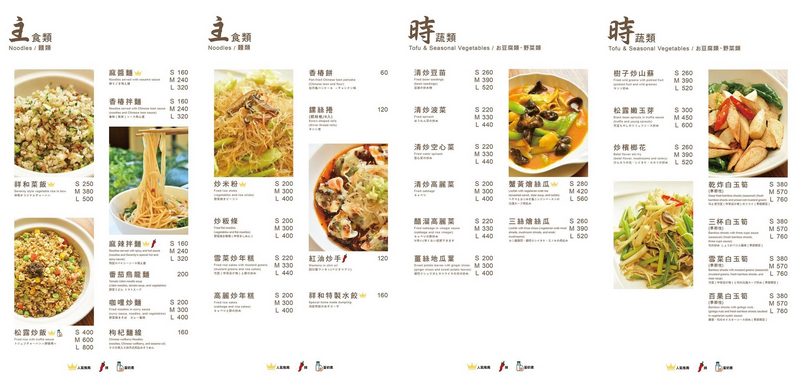祥和蔬食料理菜單,紅色菜單看起來十分討喜,菜單從開胃冷盤、經典熟食、主廚熱炒、豆腐、干鍋、養生鍋、主食、時蔬等等,餐點都不含五辛素無肉以及無五辛的全素或奶蛋素菜,祥和蔬食料理有別於常見的素食餐廳,走川式料理手法讓素菜入味健康又對味,菜單圖文精美有多國文字很細心,祥和蔬食菜單連結(實際品項和價格請依店家公告為主)