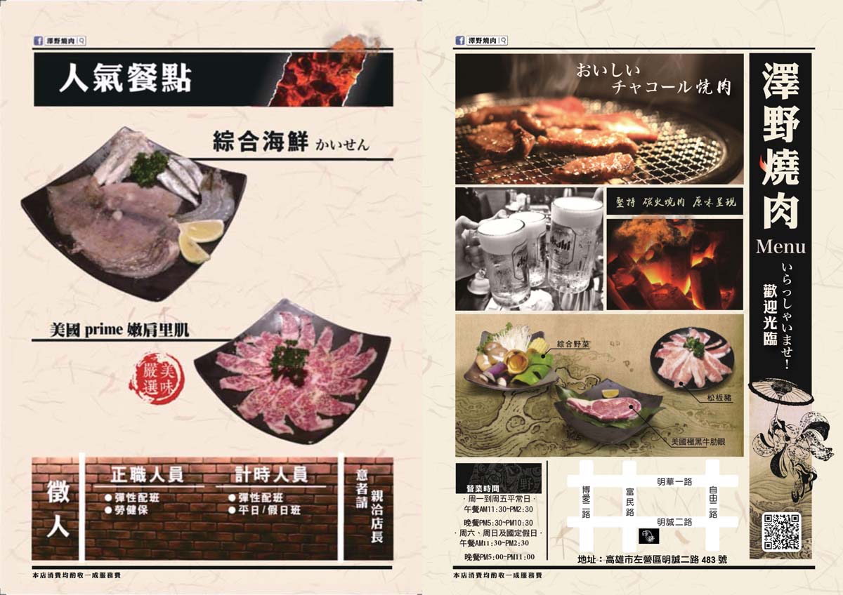 北高雄燒肉必吃,搭乘捷運步行亦可抵達,就在明誠路上的澤野燒肉屋