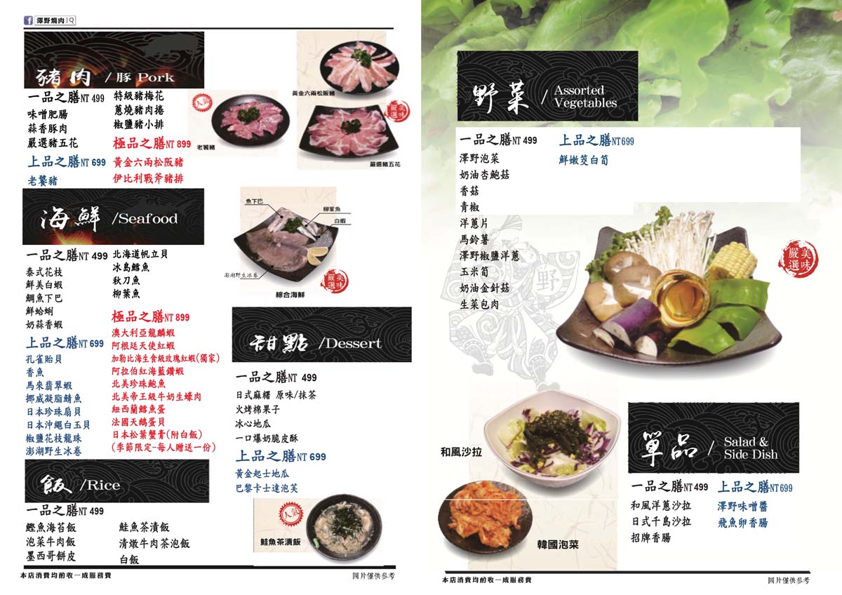 澤野燒肉屋 菜單(以店鋪實際菜單為主)