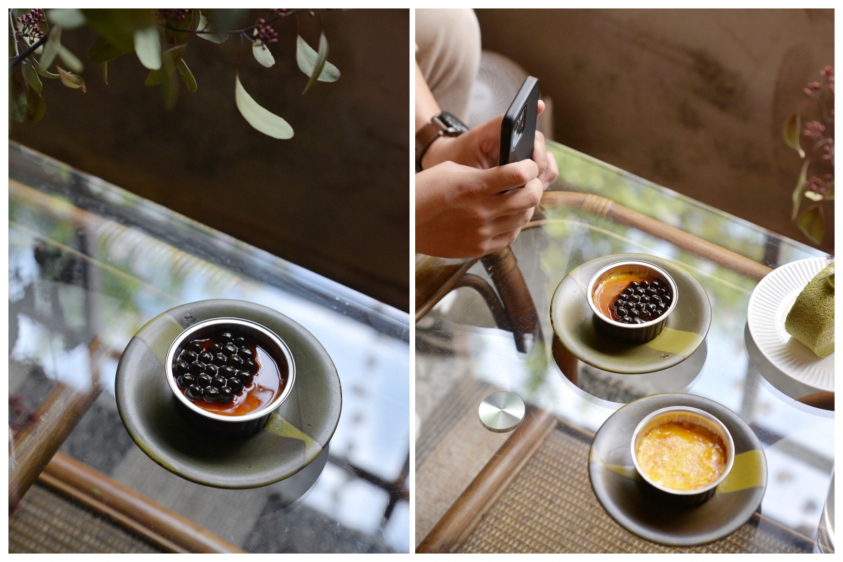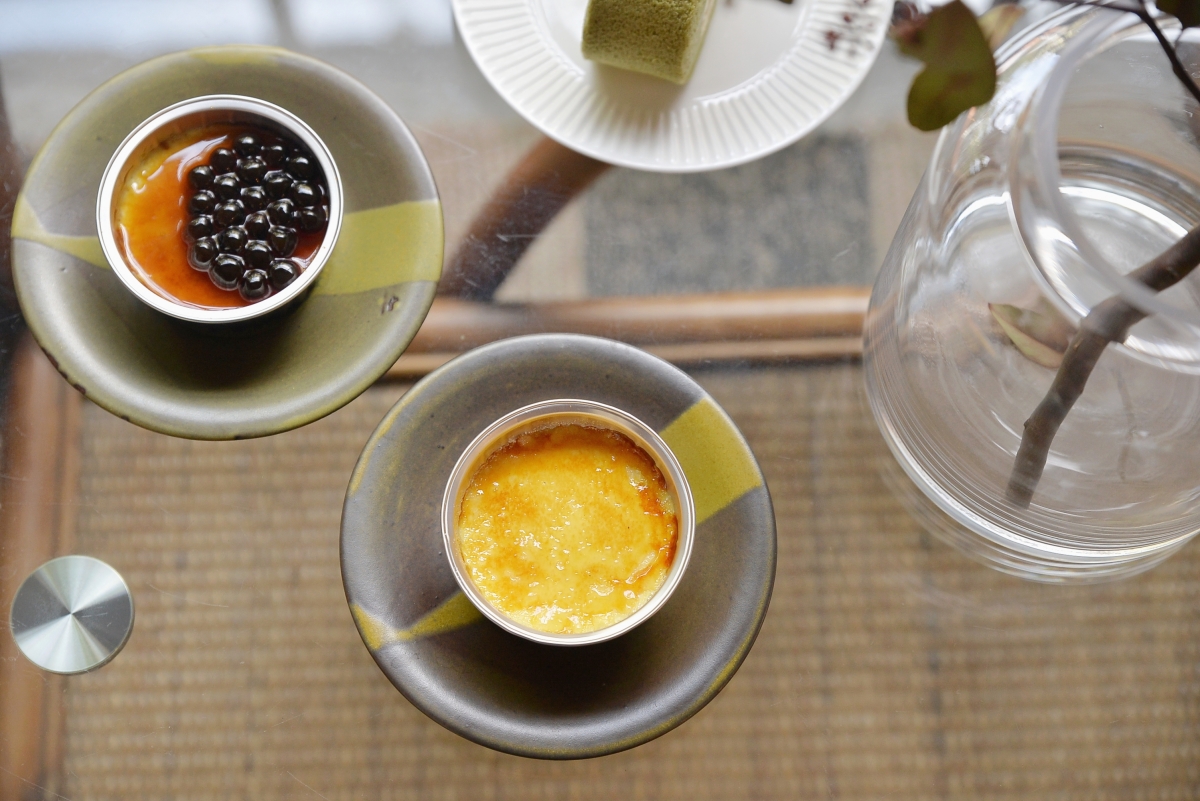 烤布蕾口感偏扎實,蛋香很濃郁,但是甜度較高,比較容易膩口。珍珠Q彈的口感很不錯,但是加了珍珠以後更甜,大家吃了都好想喝兩杯水(笑)覺得可以大家一起點一、兩個分著吃,比較不膩唷!