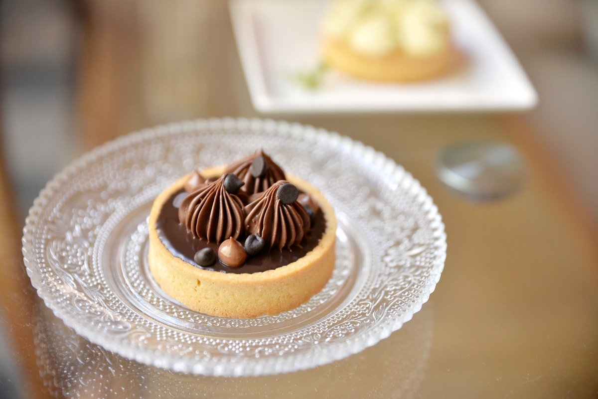 這款巧克力塔帶點微苦風味,不膩口,小小的一塊剛剛好。塔皮一樣很優秀,巧克力餡有層次,感覺不只用一款巧克力下去製作,還有巧克力豆增添口感。整體來說我覺得是適合大人的巧克力塔,不過對於平常少吃甜食的人來說會有一點甜,我個人是覺得還行,蠻不錯吃的。