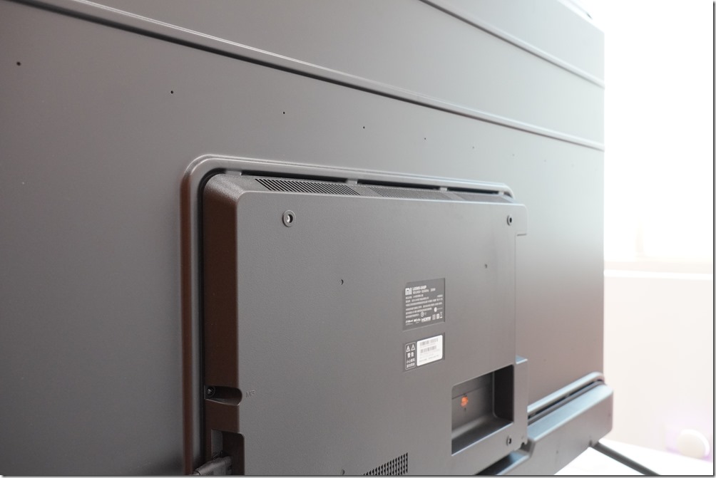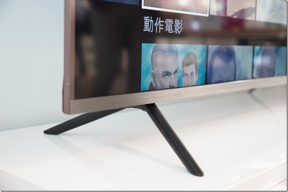 螢幕邊框為窄邊框設計,搭配金屬拉絲紋路,看起來非常有質感,而市面上很多同價位帶的65吋4K電視幾乎都是用塑膠外殼,相比起來小米的質感更加細緻,也很能融入各種不同家庭的裝潢設計,底座設計也是俐落有型,不論是要上牆壁掛或是放在電視櫃上都有其彈性。
