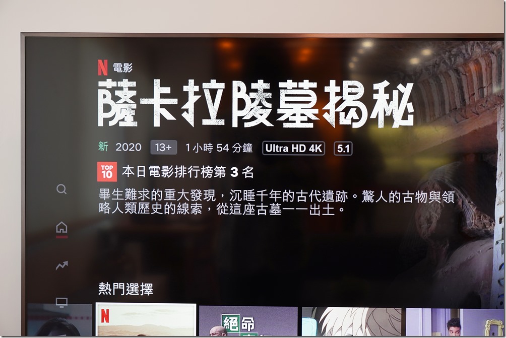 比方說在收看考古電影時,文物出土伴隨著的塵煙,在小米電視上可以非常細膩的呈現,彷彿自己就在考古現場跟著考古學家一起揭秘的感覺。這類電影通常也會有比較大的畫面反差,例如陽光照進原本埋在地下的昏暗遺址,像這類亮暗部差異大的場景對比度調整的也不錯,不會有亮部白成一片、暗部黑得看不清楚等情況出現。