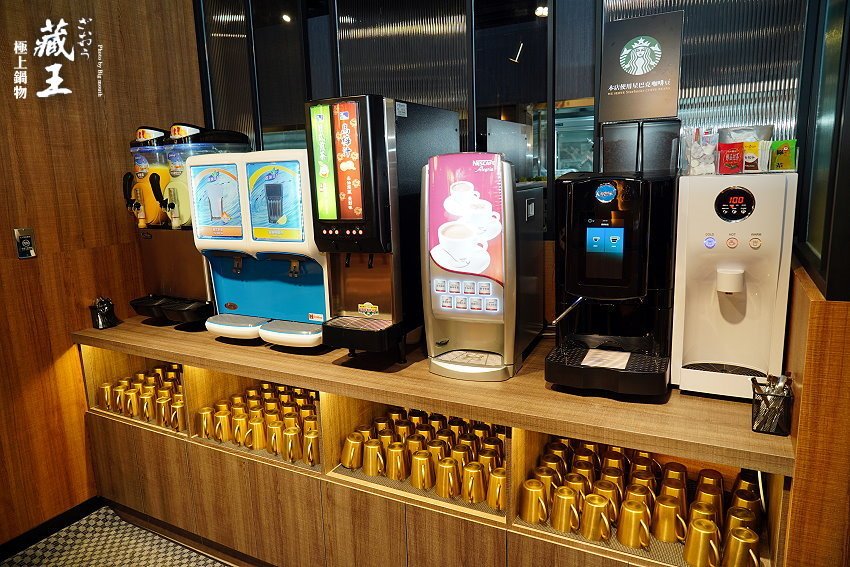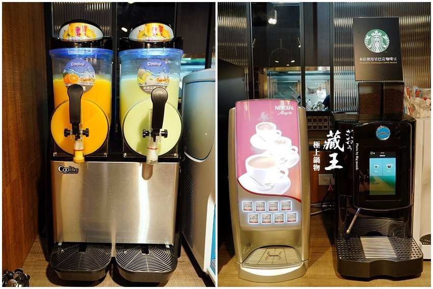 ▼這裡還有提供飲料自助吧,不管是冰沙、茶飲、果汁,或是咖啡、熱飲、沖泡飲品等通通應有盡有,而且還是採用星巴克咖啡豆,喝起來就是爽快啦!推薦必喝的就是招牌的泰式奶茶,喝起來沒有泰國那麼甜,搭配火鍋也很適合!