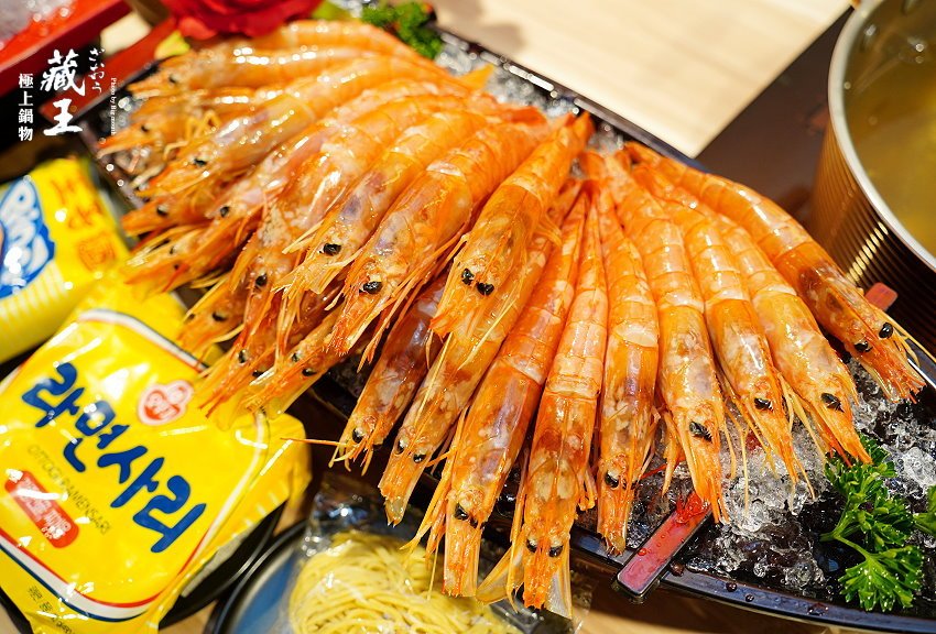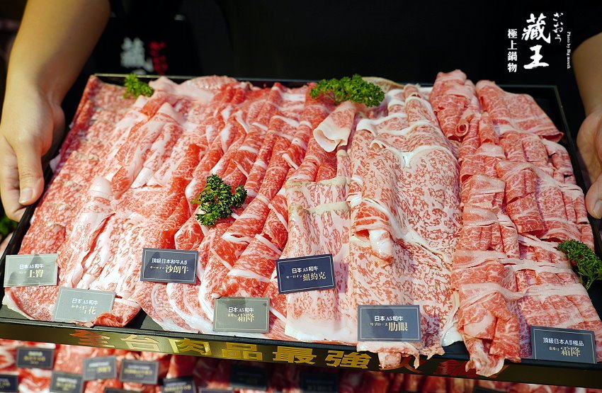 林口火鍋「藏王極上鍋物」霸氣登場!!這間藏王是中壢知名火鍋「大魔大滿足鍋物」的二代店,不僅環境、裝潢到食材、甜點通通大升級,而且開幕至今三個多月,不僅粉專顧客評論完全零負評,厲害的是Google評論竟然還有高達5分的高分,這真的是非常不容易的一件事啊XD我們這次享用的就是號稱「全台肉品最強火鍋」的「世界牛豚大賞六人大食鍋」,不僅有多達28種頂級肉品,重量更是高達168盎司,不管是日本A5和牛、美國和牛、澳洲和牛、美國安格斯Prime牛肉、西班牙伊比利豬、荷蘭松阪豬等通通都能一次品嘗,讓你用舌尖就能環遊世界!!此外還有24隻阿根廷天使紅蝦及菜盤、附餐、自助飲料吧、甜點等,說是6人份但我們覺得可以8~10人吃不誇張,當天敵人實在太強大了~~我們完全舉白旗投降啦XD
