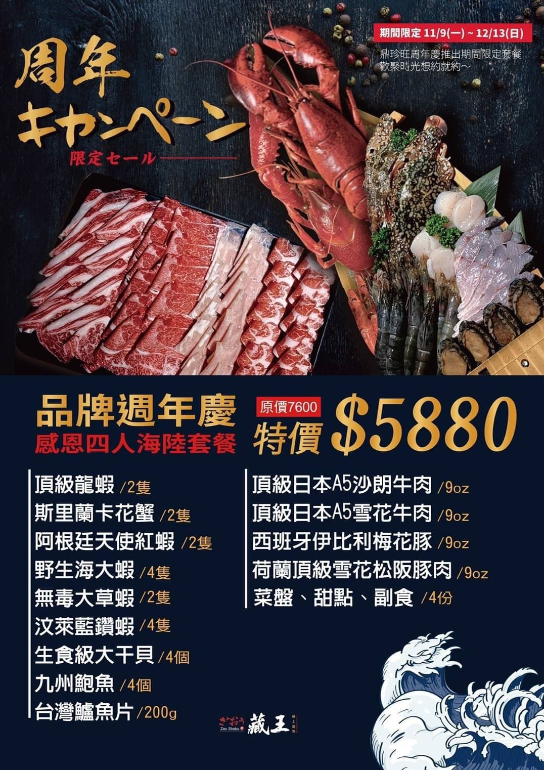 2.週年慶推出期間限定套餐!『品牌週年慶感恩四人海陸套餐』原價7600元,特價只要5880元!!