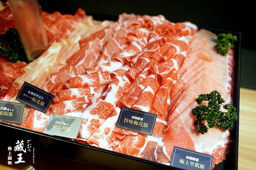 ▼最右側則是滿滿的豬肉~~就連不吃牛的朋友也可以吃的很過癮!像是荷蘭松坂豚、台灣自然活力梅花豚、西班牙伊比利豚、美國嚴選旨味梅花豚、美國嚴選極上里肌豚,一次就有五種不同的頂級豬肉,份量也給的非常大器啊!