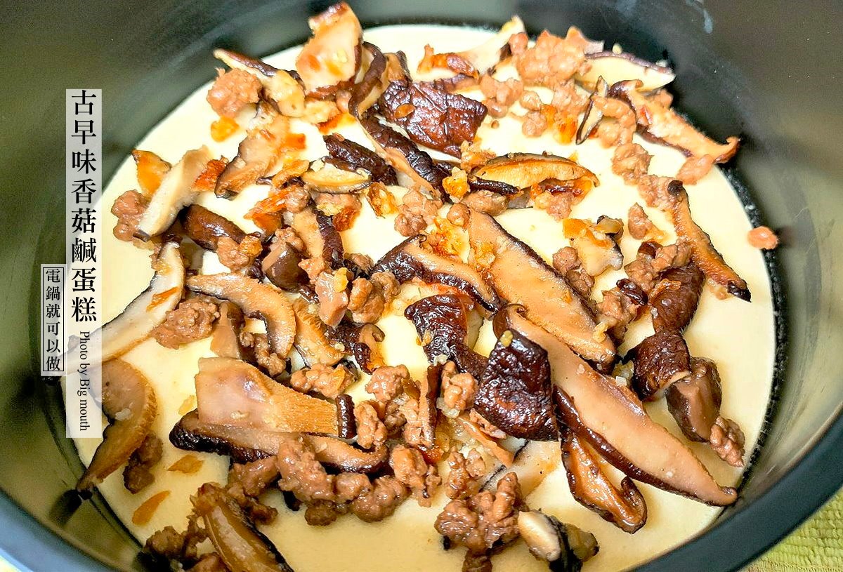 ▼另外,如果你有煮好的肉燥也可以加料,香菇肉燥當餡料會更好吃! 但記得肉燥要盡量瀝乾,否則等等會影響到蛋糕糊的成形喔!