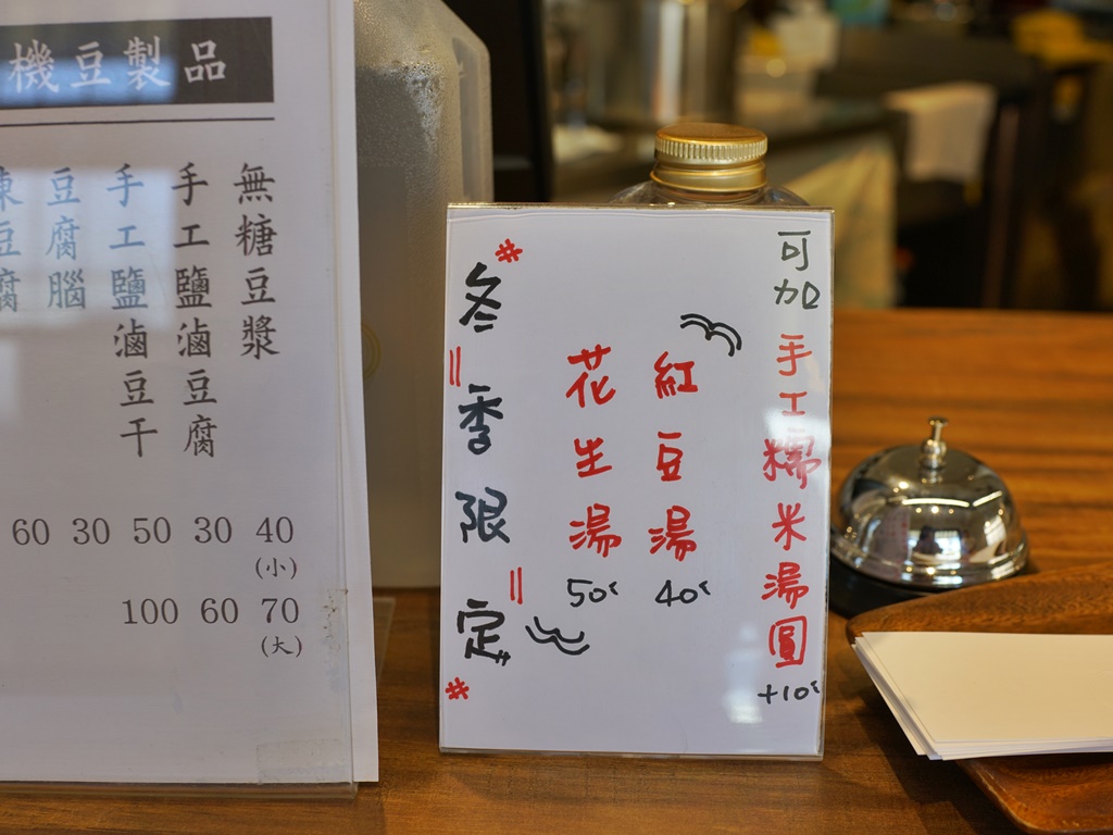 目前有推出冬季限定的紅豆湯與花生湯,可加價升級手工糯米湯圓!