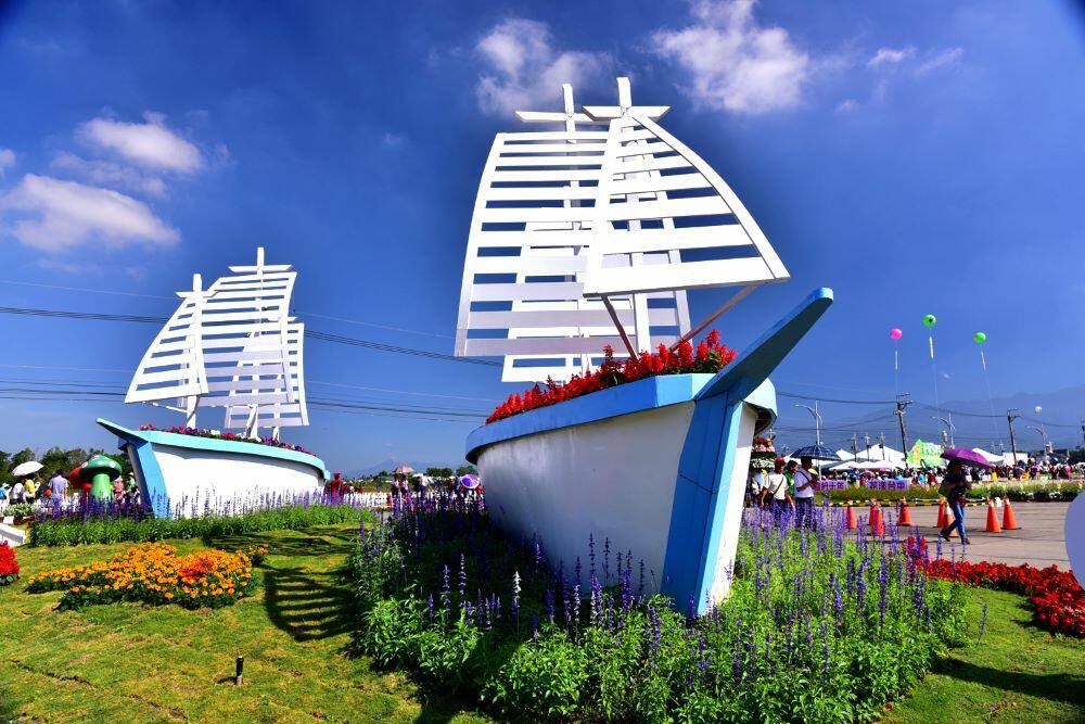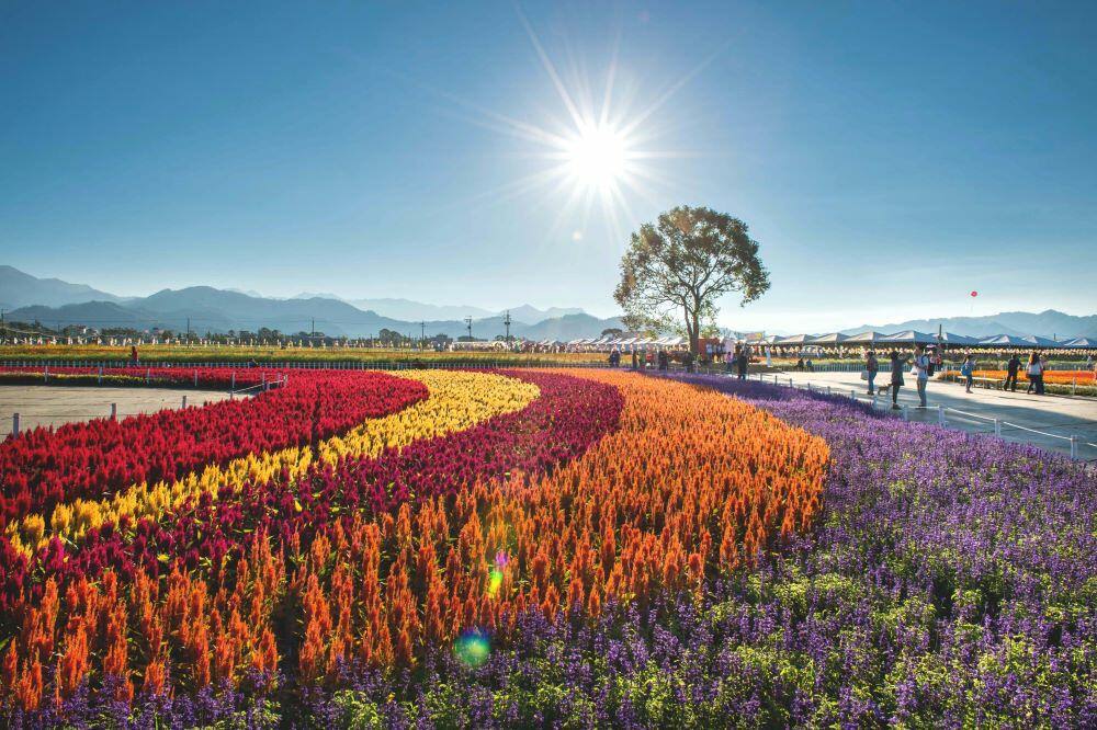 • 新社花海重點:台中國際花毯節、花海區、百合花展館、農產特區