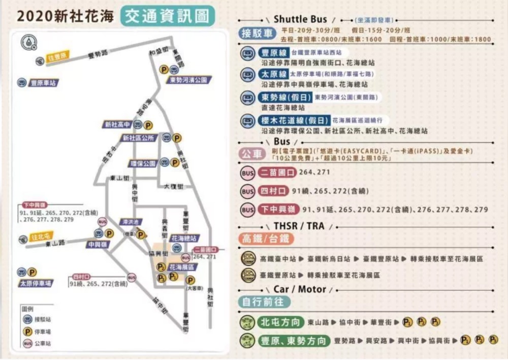 2020新社花海接駁車/停車場/交通管制