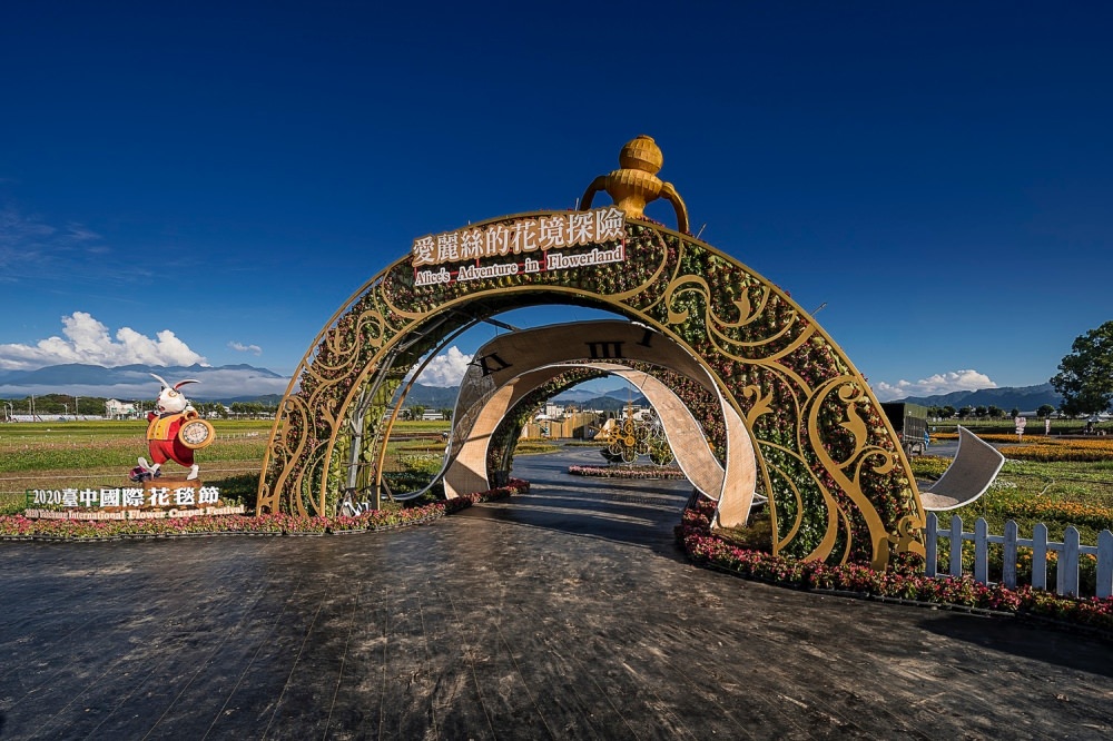 今年的2020台中國際花毯節是以《愛麗絲的花境探險》為設計主題,跟著愛麗絲、兔子、紅心皇后與樸克牌士兵穿梭於花海中。有趣的是設計師還在每個叉路都加入許多問答,根據不同的「抉擇」,還會影響最終看到的結果,很令人期待。(本文2020花毯節照片取自台中市政府觀光局網站)