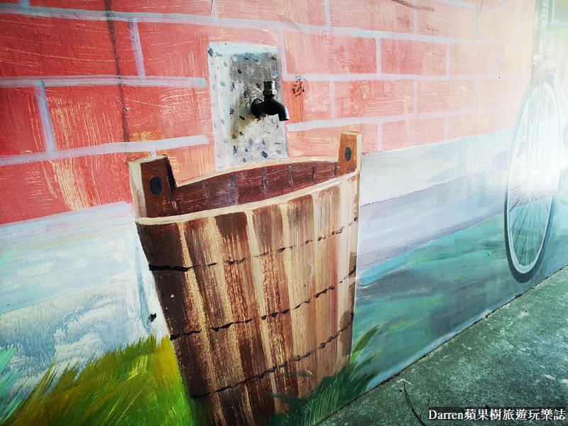 這裡的彩繪很棒的一點就是融入當地的建築,讓人可以互動式體驗拍照,像是牛就有繩子可以讓人拉著牛拍照,水龍頭直接畫個水桶,還有讓人懷念的柑仔店唷