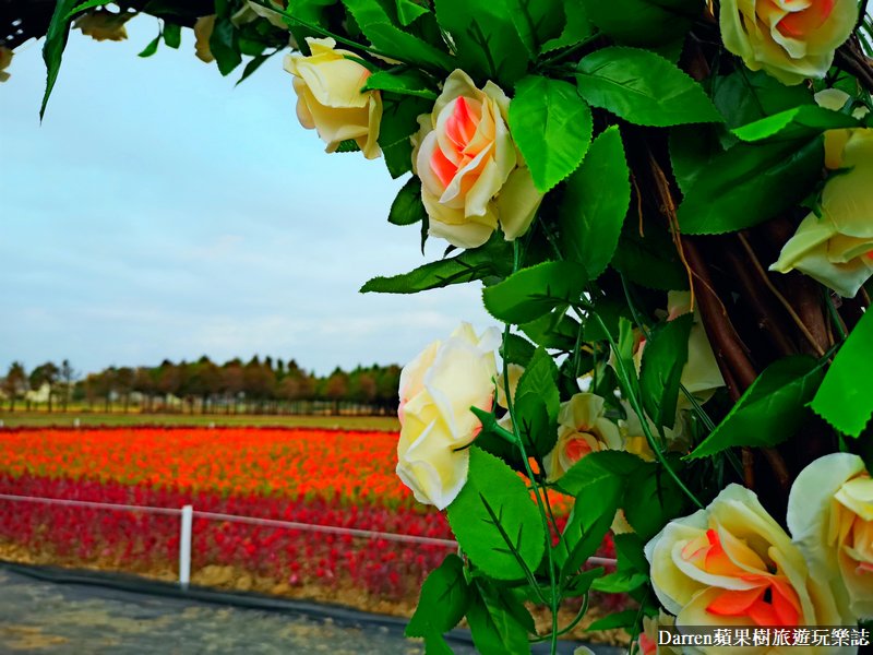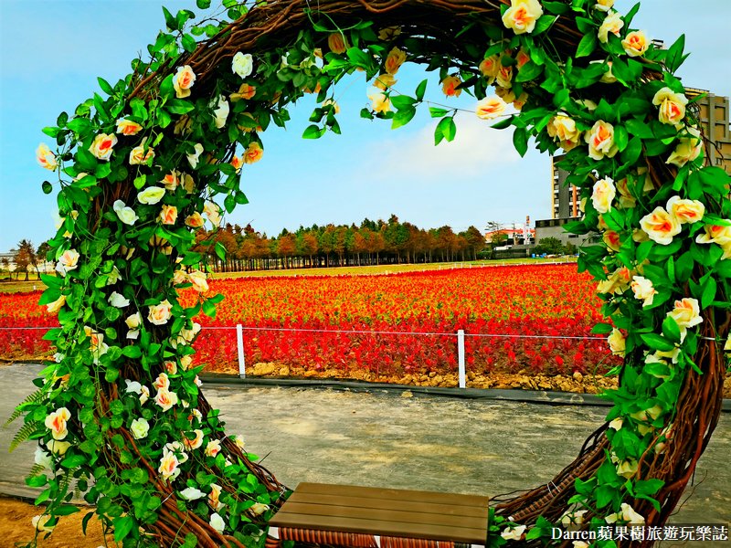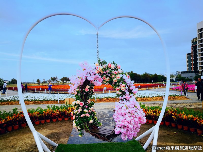 說到好拍藝術裝置,在花海會場中間的愛心盪鞦韆,絕對會是不能錯過的拍照熱點,愛心加上花海拍起來美美的