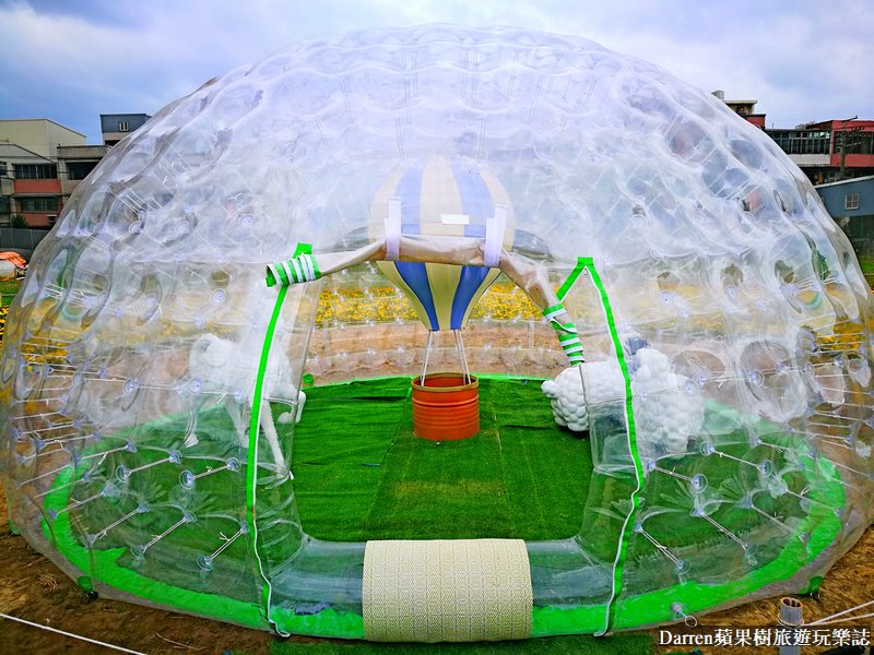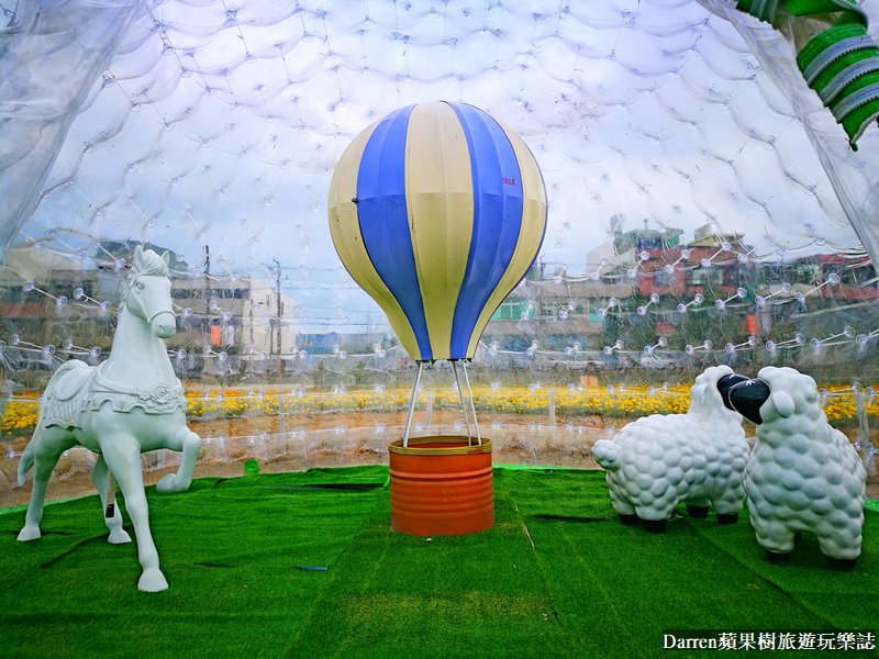 氣球泡泡屋可以走進去拍照,裡面有熱氣球、白馬、小綿羊等裝置藝術,光這些裝置網紅網美們應該就有很大的發揮空間,小朋友看到小動物也特別嗨森