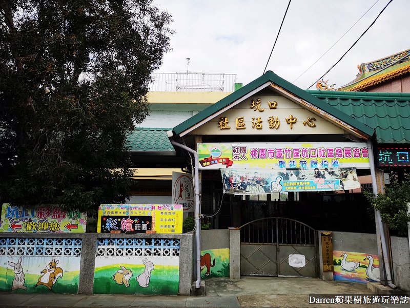 坑口彩繪村是桃園蘆竹著名彩繪村景點,從誠聖宮旁的路走進去,沿途都可以看到充滿鄉土味的彩繪,坑口彩繪村的彩繪是當地居民和美術老師聯手彩繪,有別於台灣其他彩繪村,這裡是以60年代農村生活為主題,有著濃厚的田園懷舊氛圍