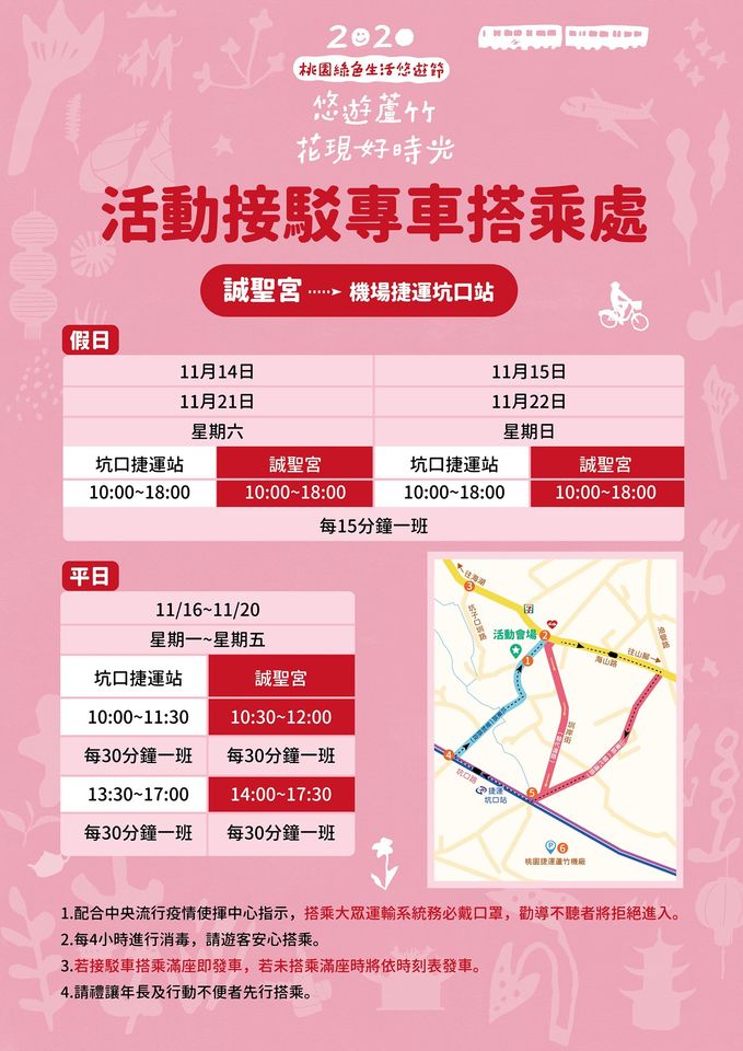 ▼2020桃園綠色生活悠遊節活動接駁專車資訊(誠聖宮→機場捷運坑口站)