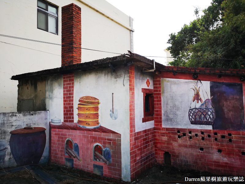 以前三合院阿嬤的灶腳,仔細看還把煙囪也融入到彩繪裏頭,以前真得就是用燒柴火來煮飯,樹小編也燒過柴火,後來就都變成瓦斯爐了