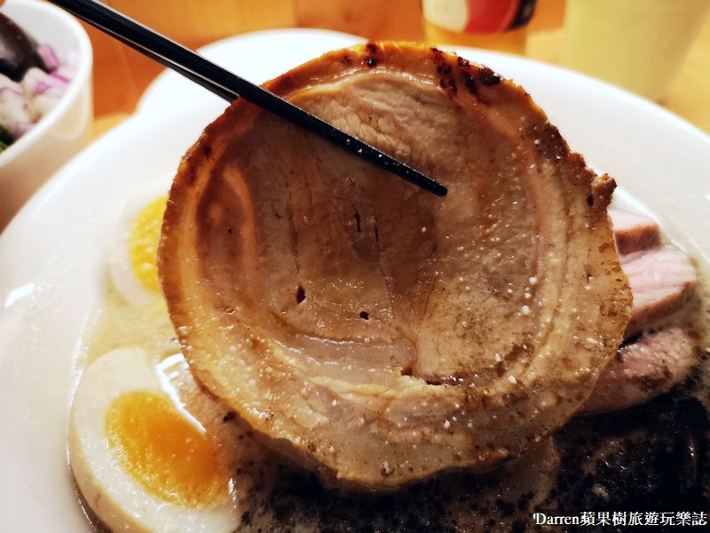 五花叉燒肉很大一片口感軟嫩又有厚度非常有誠意,我同碗加點了舒肥梅花肉則是略微扎實Q嫩的口感,兩種不同的肉各有千秋,只有小孩子才做選擇我全都要,另外拉麵這次硬度我選擇適中,就依個人喜好囉