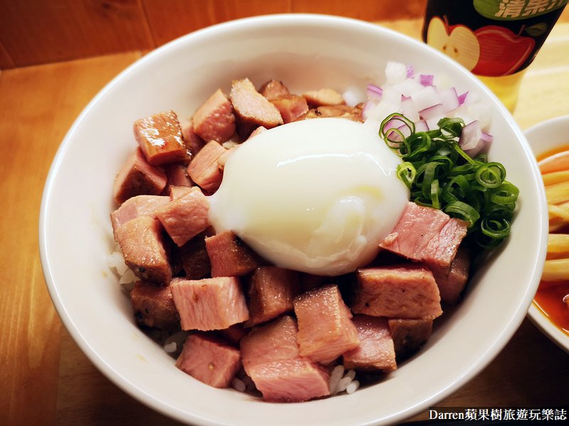 要吃之前先把半熟蛋搓破,然後把蛋黃伴著白飯一起入口非常療癒,瞬間那種幸福感跟爽度,讓人大大滿足,底下鹹甜醬汁加白飯也不錯,厚切叉燒肉就像骰子牛肉Q嫩厚實,想吃叉燒飯的朋友啊!!可要早點衝來,我幾乎每次來沒多久就被點光光囉