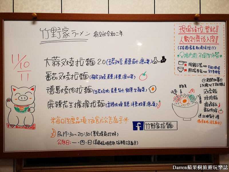 竹野家拉麵菜單不會全部供應每日供應餐點會寫在白板上而且數量不多隱藏版排隊美食值得推薦