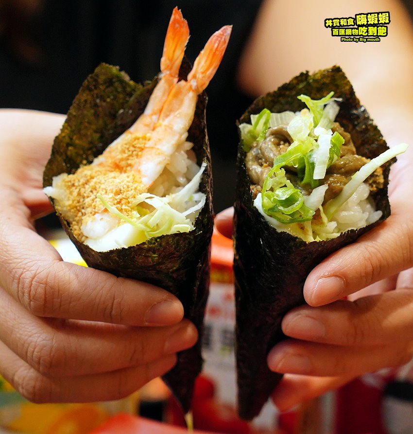 ▼手捲,這裡也有提供四種口味,我們選的是蝦子、蟹膏,配料也滿豐富的,吃起來整個快飽一半啦!