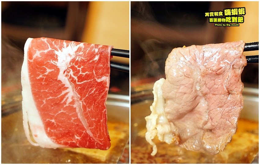 ▼美國極黑和牛,稍微涮煮幾秒即可,吃起來不會過於油膩,軟嫩多汁又帶有濃濃牛肉香氣,搭配微辣湯頭不太需要沾醬就很美味!