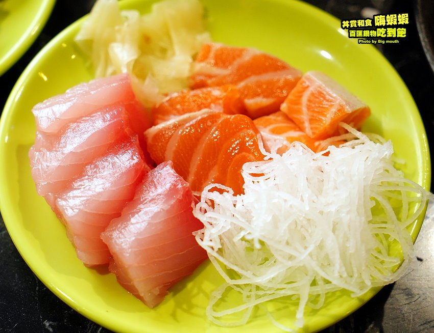 ▼當天提供的生魚片有鮭魚、鬼頭刀、旗魚等,我們點了鮭魚、旗魚,吃起來鮮度滿滿,柔嫩又美味!一旁也有提供蘿蔔絲、甜薑可以自取搭配~~