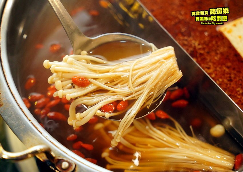 ▼巴西蘑菇湯,除了有主角巴西蘑菇之外,還加了枸杞、金針菇等配料,喝起來帶有自然的甘醇甜味,不管是涮煮肉片或海鮮都很適合!