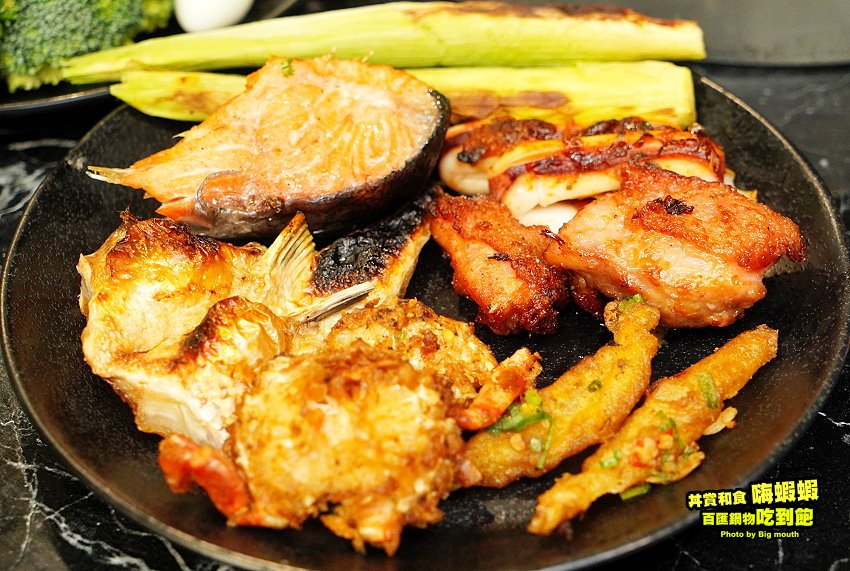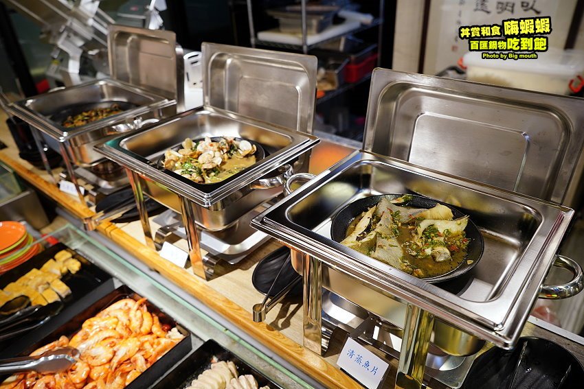 ▼像是日式唐揚雞、銀魚西蘭花、烤玉米筍、烤鯛魚下巴、烤鮭魚、照燒雞腿、烤五味魷魚、避風塘蟹身等,菜色跟飯店沒什麼兩樣!