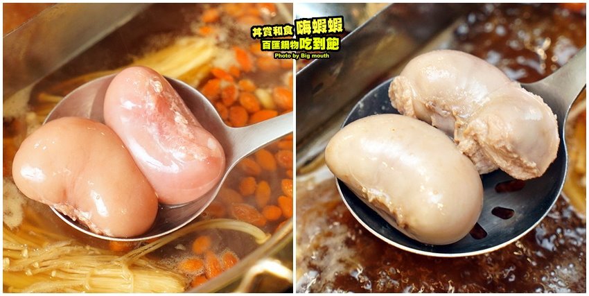 ▼雞佛,煮至變色後就差不多可以起鍋享用~~吃起來有微爆漿的快感,帶點酒香,吃起來也比較沒有腥味,搭配醬料就很合拍!