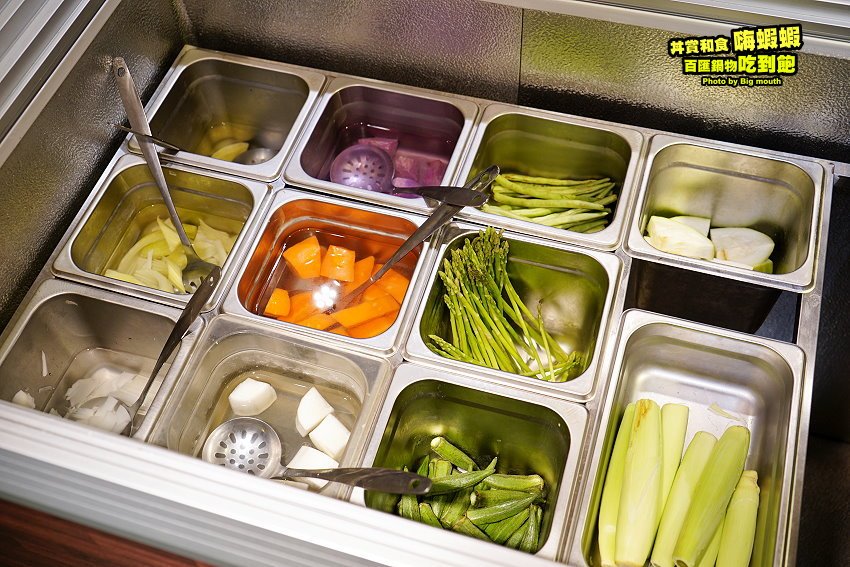 ▼現場還有帶殼玉米筍、胡瓜、四季豆、蘆筍、秋葵、紫山藥、紅蘿蔔、白蘿蔔、地瓜、西洋芹、竹筍片等蔬果食材!