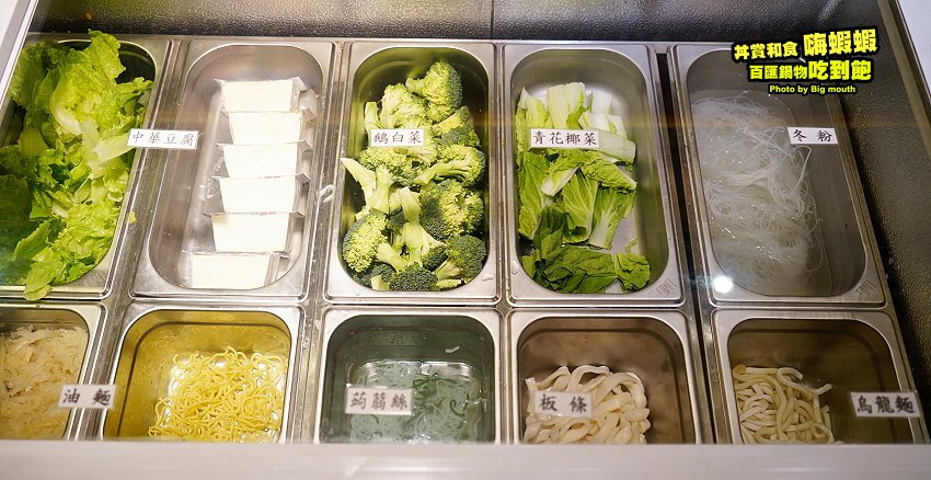 ▼蔬菜方面也沒在開玩笑,有大陸妹、山東大白菜、高麗菜、水蓮、酸菜、娃娃菜、豆芽菜、青江菜等,大魚大肉之際也讓大家營養更加均衡!
