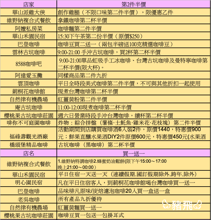 大家對雲林古坑的第一印象是什麼呢?豬飛直覺想到劍湖山跟咖啡,對於這裡實在是我記憶中最陌生的城市了,大部分人出門旅遊都跟豬飛一樣跳過雲林直接到下一個城市,但今年秋天的雲林完全不一樣啦。最近攻佔各大媒體版面、網路搜尋最熱門,號稱史上最浪漫的【2020台灣咖啡節】就在雲林古坑熱鬧登場,美照絕對要拍好拍滿。這次更是首次開放夜間市集,從白天一路嗨到晚上,準備好你的手機相機,把古坑森林裡的夜間party拍一波,跟豬飛一起感受越夜越美麗的夢幻氛圍。