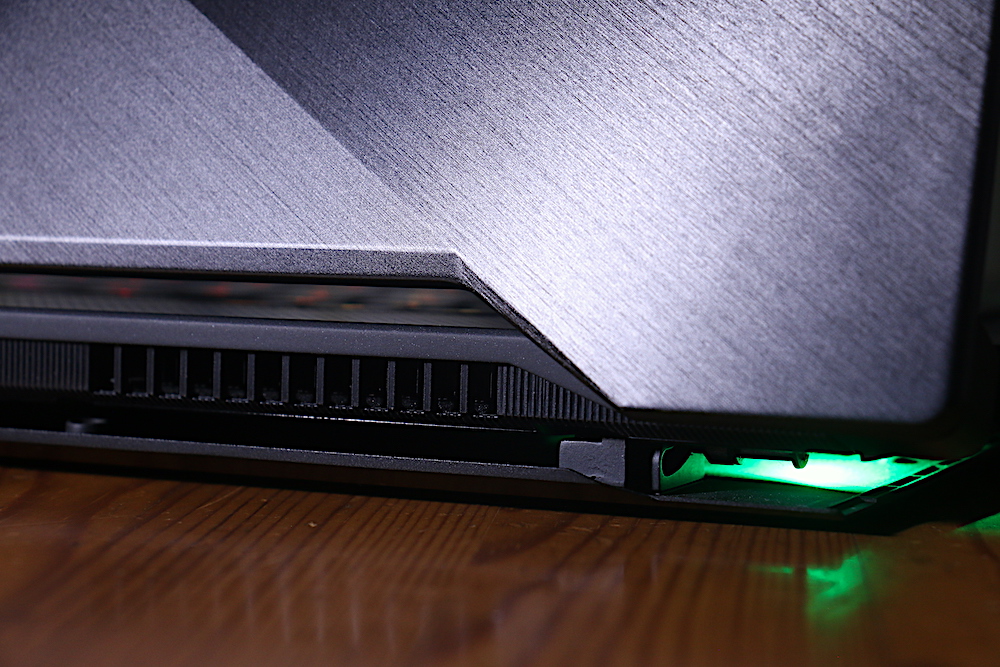 在主動式空氣力學系統 (AAS) 中間則是刻有「REPUBLIC OF GAMERS (ROG 玩家共和國)」的字樣。