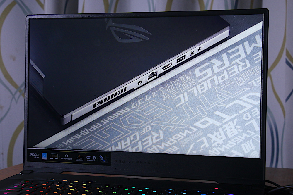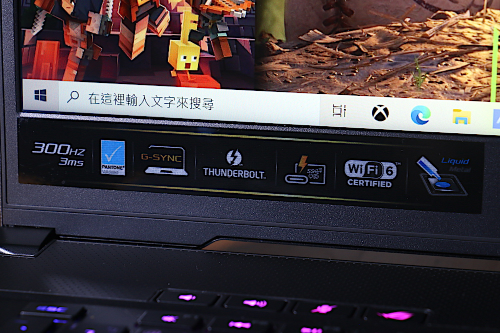 作為一台全方位電競筆電,搭載的螢幕自然會針對各類遊戲來做設定。這次評測的 ROG Zephyrus S15 配備 300Hz 超高畫面更新率與 3ms 反應速度的 15.6 吋 IPS 螢幕,除了提供順暢的畫面顯示以及具備霧面處裡的抗反光玻璃外,還通過 Pantone 色彩驗證,並支援 100% sRGB 色域,抗反光能力與色彩表現都有高水準演出,可為遊戲玩家或專業圖像工作者提供順暢且準確顯色的視覺體驗。