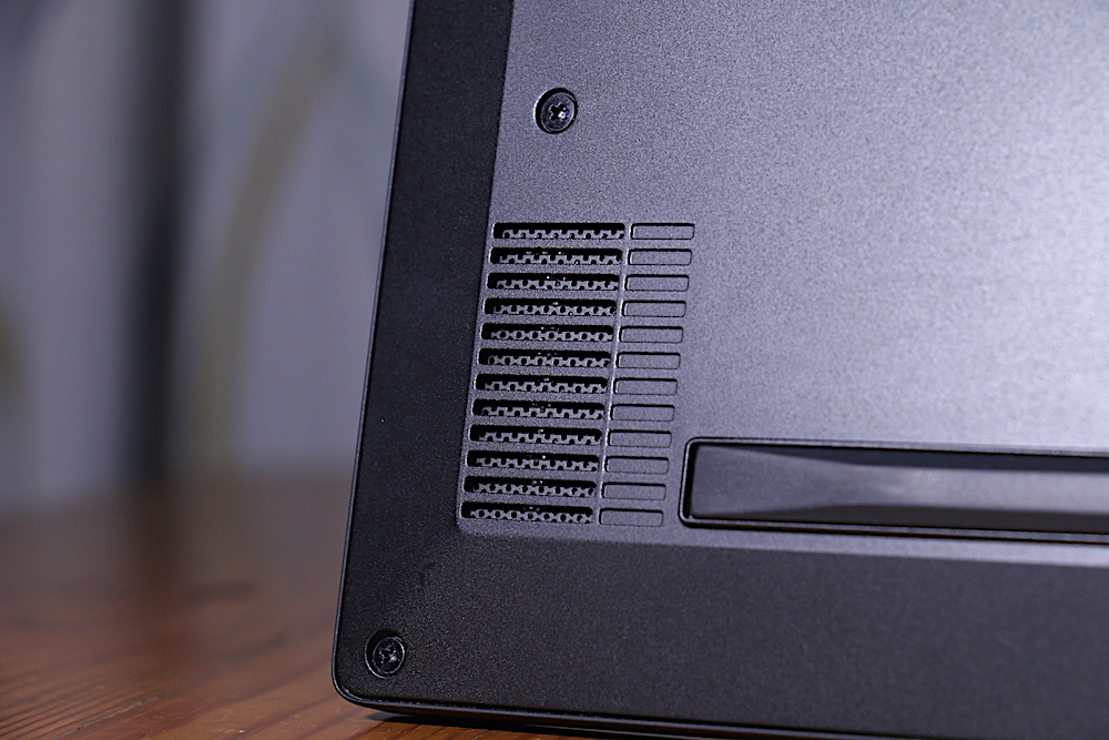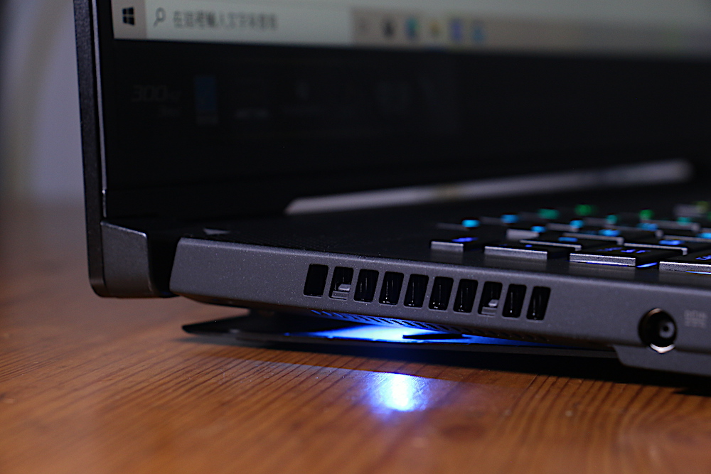 鍵盤上端佈滿散熱孔,可大量排出筆電高效能運作的熱氣,確保處理器、獨顯晶片能在正常的溫度下運作。
