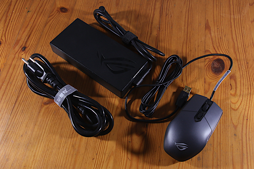 盒裝內容物一覽,除了基本的 240W 充電組之外,還另外附贈一個可調整 DPI、RGB 燈光效果的 STRIX IMPACT 電競滑鼠,以及一個可輕鬆放入 17 吋筆電的 ROG 背包,附贈的配件非常齊全,讓玩家一拿到 ROG Zephyrus S15 就能開打遊戲。