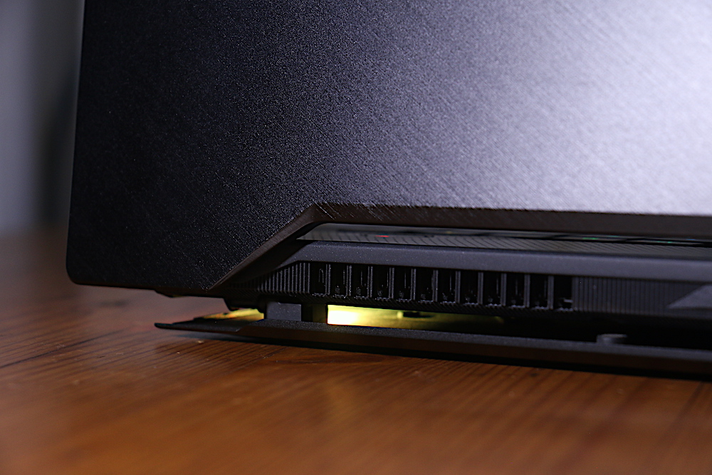 主動式空氣力學系統 (AAS) 開啟的額外通風口,除了可增加 22% 的氣流,幫助筆電快速散熱外,還可以將筆電墊高至舒適的使用角度,讓玩家長時間玩遊戲、工作都有更舒適的體驗。
