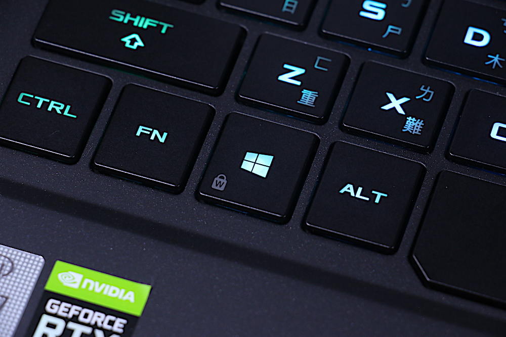ROG Zephyrus S15 配備凸點 W 鍵以及 Windows 鍵鎖定功能,能讓玩家精準掌握方向鍵與避免誤觸會讓遊戲跳回桌面的 Windows 鍵,對射擊遊戲玩家相對友善。