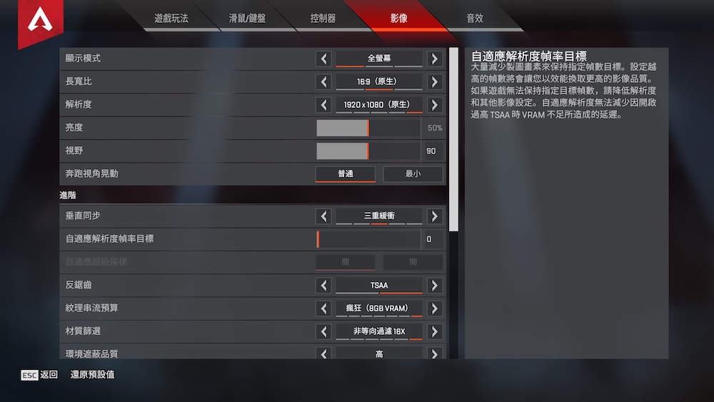 另外,我們也用最近很夯的「APEX 英雄」來進行實測,將所有設定值都調整至最高,並接上電源、開啟全效能模式以及使用無線網路,來看看 ROG Zephyrus S15 是否能順暢運行?