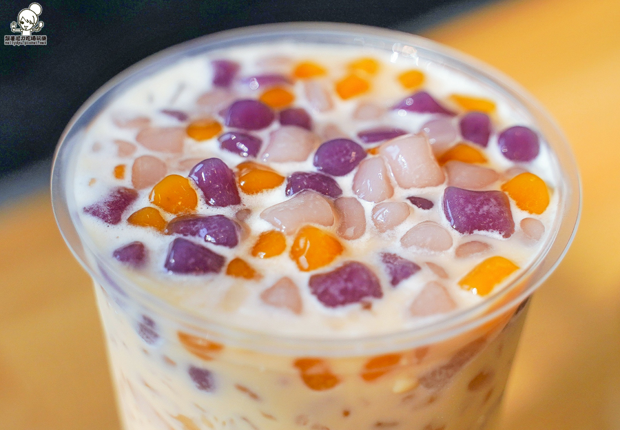 每杯都加入一大湯匙的三色芋圓,分別是芋頭、地瓜、紫薯三種口味