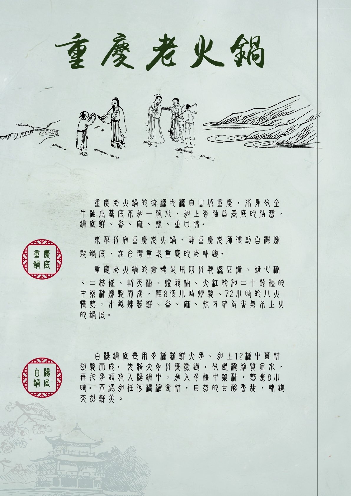 ▼就連外頭的候位區都非常好拍,有種一秒坐上時光隧道回到古代的感覺!門口也有重慶老火鍋的介紹,讓大家先參考一下!